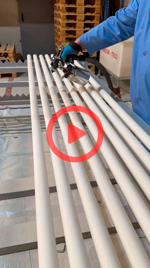 The revestement R-20000 Pinta Rulli has been developed for the treatment of ceramic rollers, with the same coefficient of expansion as the rollers so that it is perfectly attached to the rollers and protects them from both chemical attacks and pollutants.